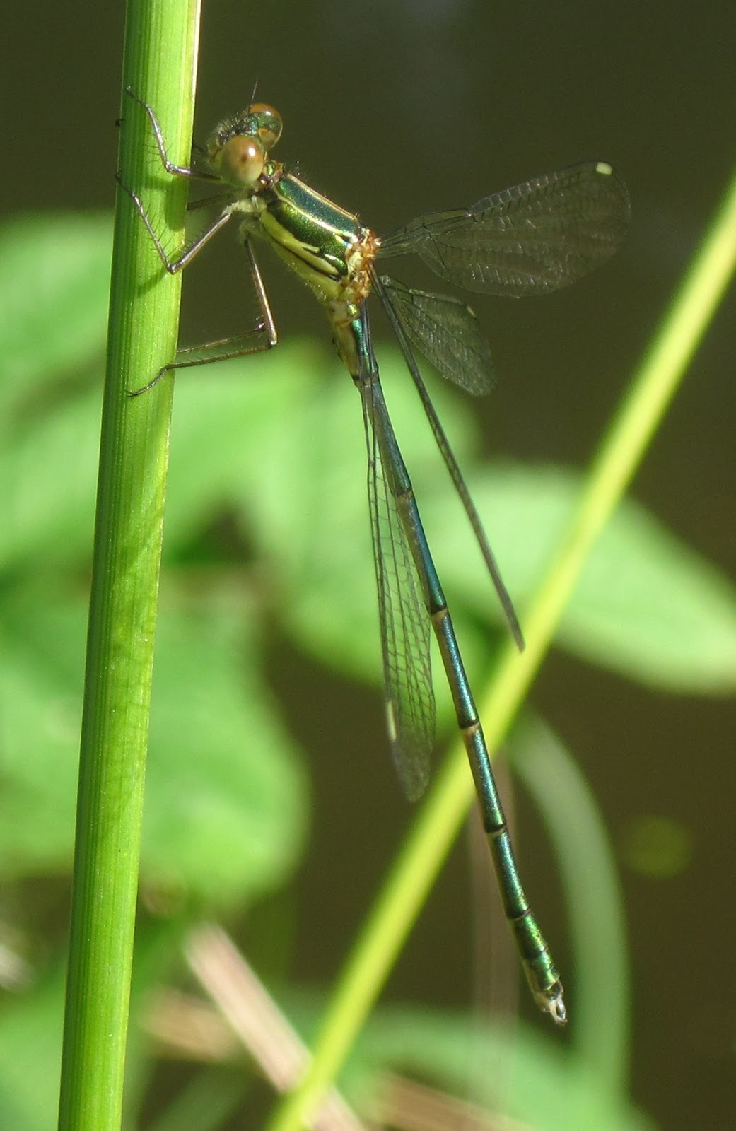 Vorig week dinsdag was uiteraard erg succesvol maar het was me toen niet gelukt rivierrombouten te vinden op IJsselmonde. Daarom stap ik om een uur of tien op de fiets voor een tweede poging. Als ik langs het develbos kom besluit ik dit eerst even met een bezoek te vereren. Dat levert naast het gewone spul ook enkele houtpantserjuffers en bloedrode heidelibellen op maar verder is het erg stil.